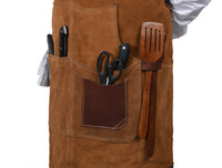 The Arucas Suede Apron from Aaron Leather Goods is a One Size Fits utility Apron which has a diversified appeal from Chef's to Metal Forgers to Construction Workers to Home Cooking to Utility Workers. An Apron for One and All so be the one to own a One Size Fits All Utility Apron. Ever wondered what reinforced stitching, premium quality Suede Leather, cross back straps and a personified design can do for the end product.