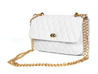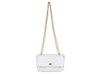 Add a touch of Parisian chic to your wardrobe with the CABRINI Belle. This white quilted shoulder bag, stitched to perfection and finished with gold-tone fittings, transitions effortlessly from daytime elegance to evening glam.