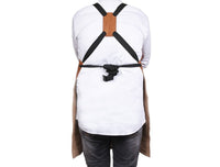 The Manresa Leather Apron from Aaron Leather Goods is a One Size Fits utility Apron which has a diversified appeal from Chef's to Metal Forgers to Construction Workers to Home Cooking to Utility Workers. Ever wondered what reinforced stitching, high density water repellent waxed canvas, cross back straps and a personified design can do for the end product.