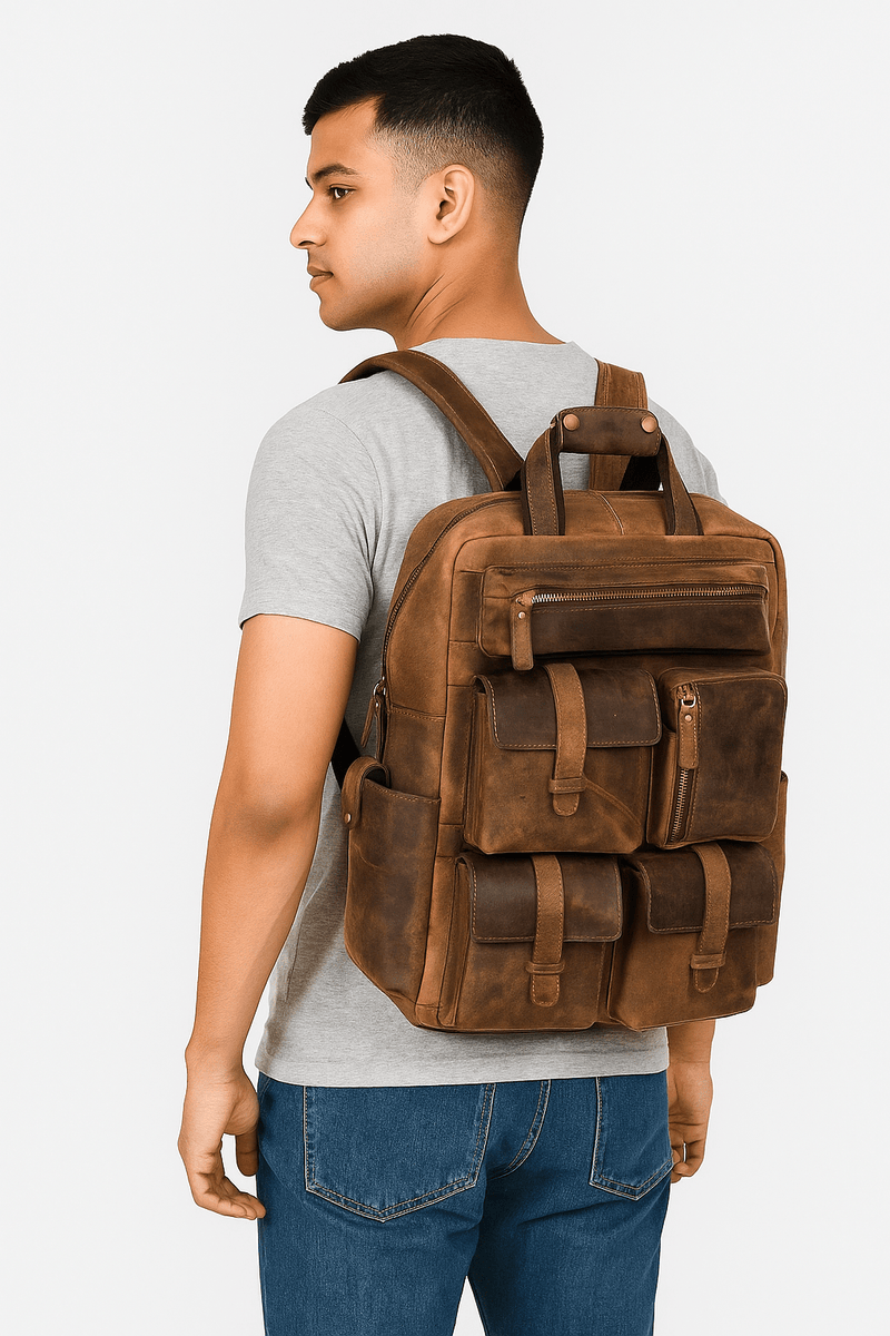 With its timeless charm and rugged appeal, the Hunter Brown Vintage Leather Backpack from CABRINI is built for adventure. Crafted from full-grain leather, it pairs bold design with daily functionality—ideal for travel, work, or college.