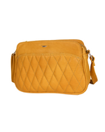 Bright, bold, beautifully CABRINI: Quilted Top Grain Leather in vibrant mustard Gold-tone hardware and adjustable strap Zippered main compartment with inside pockets Perfect for brunch, day-outs, and weekend style