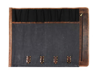 - Stretchable Knife Pockets and Zipper Pouch to keep the Knives Secure. Leather Flaps are incorporated inside to further protect the knives from accidental damage, dust and moisture.