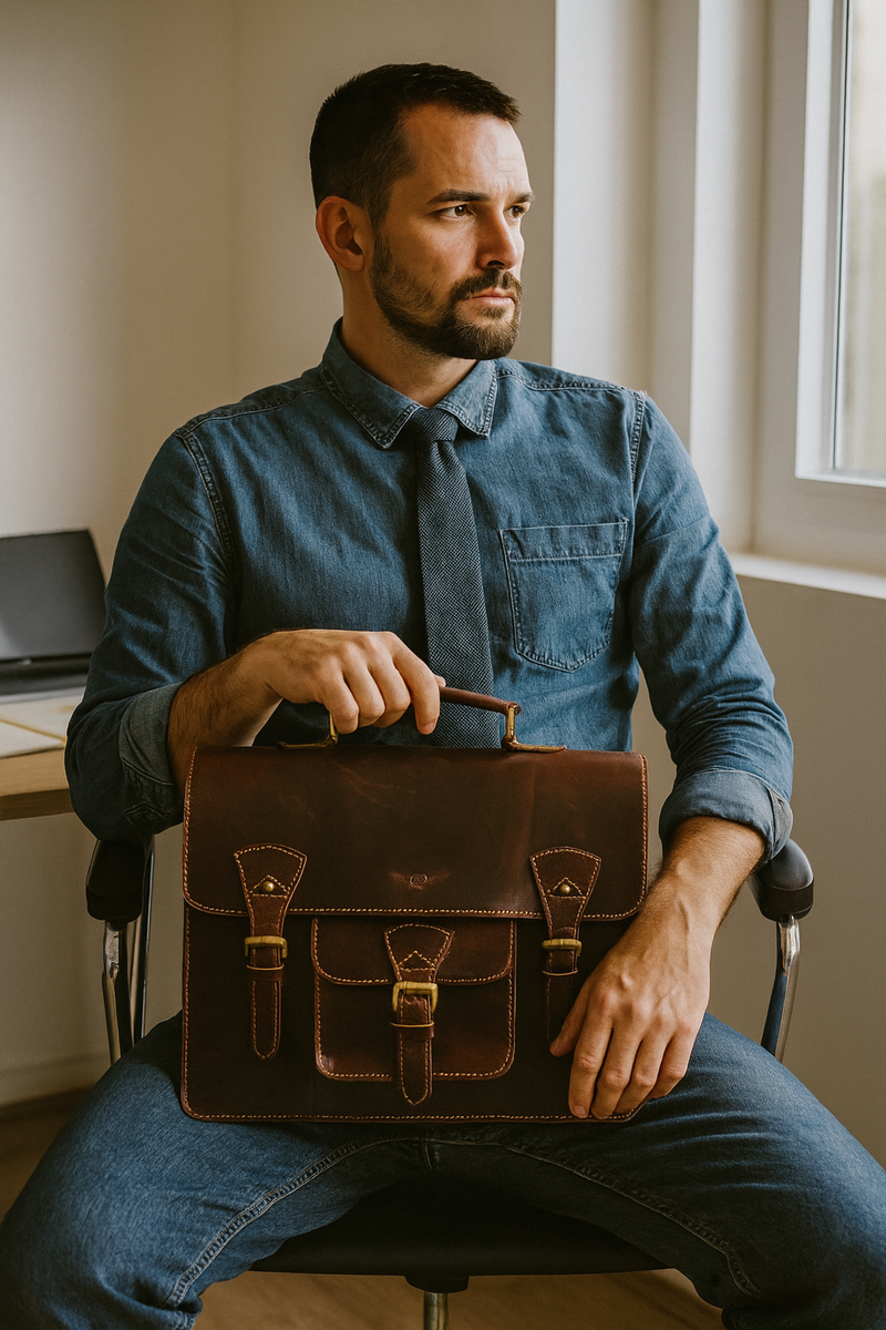 - Classic Design: The rich, dark brown leather is complemented by brass hardware, giving the bag a timeless and sophisticated appearance.