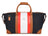 Unleash bold sophistication with the Monaco Duffel. This black leather travel bag from CABRINI is defined by its signature red and white racing stripes. Spacious, durable, and distinctly stylish—it’s made for the traveler who c...