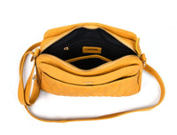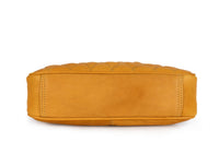 Bright, bold, beautifully CABRINI: Quilted Top Grain Leather in vibrant mustard Gold-tone hardware and adjustable strap Zippered main compartment with inside pockets Perfect for brunch, day-outs, and weekend style