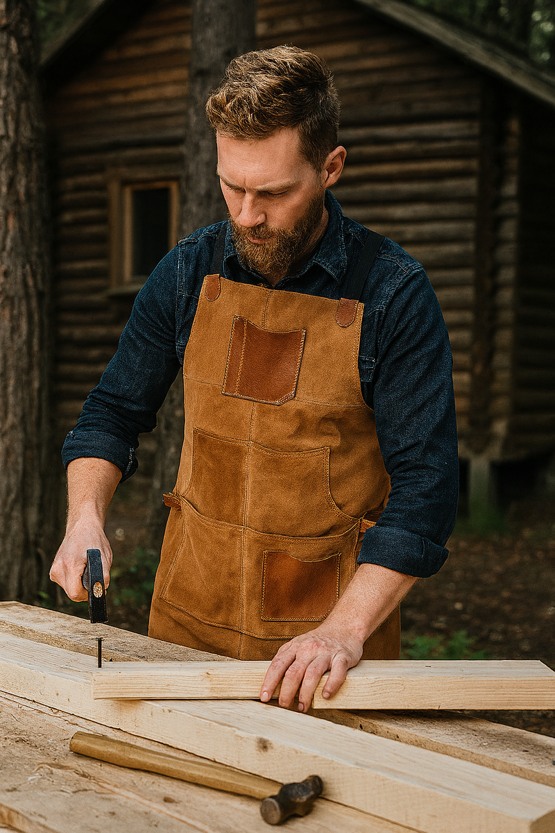 The Florence Suede Apron from Aaron Leather Goods is a One Size Fits utility Apron which has a diversified appeal from Chef's to Metal Forgers to Construction Workers to Home Cooking to Utility Workers. An...