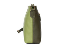 Add a splash of color and elegance to your daily style with this chic color-block leather crossbody bag. Designed with a blend of blue, green, and peach panels, it’s a perfect accessory for the modern, stylish individual.