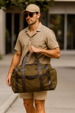 A rugged yet stylish travel duffle made from premium waxed canvas and genuine leather. Spacious, durable, and lightweight with multiple carrying options—perfect for travel, gym, or weekend getaways.