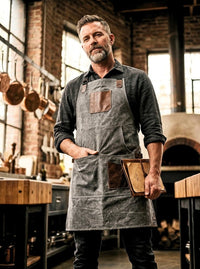 The Turin Waxed Canvas Apron in Ash Grey by Cabrini Luxury is a masterpiece of heavy-duty industrial workwear, designed for the professional who values uncompromising protection and a sophisticated, monochromatic aesthetic. Handcrafted from premium 16oz waxed cotton canvas and reinforced with distressed hickory leather, this apron offers a masterclass in combining water-resistant utility with high-end artisanal craftsmanship. The design is anchored by its ergonomic cross-back strap architecture and a multi-tier organizational suite, providing superior comfort and functionality during high-intensity tasks. Whether used by a master griller, a bespoke barista, or a professional woodworker, it serves as a bold statement of professional dedication and timeless quality.
