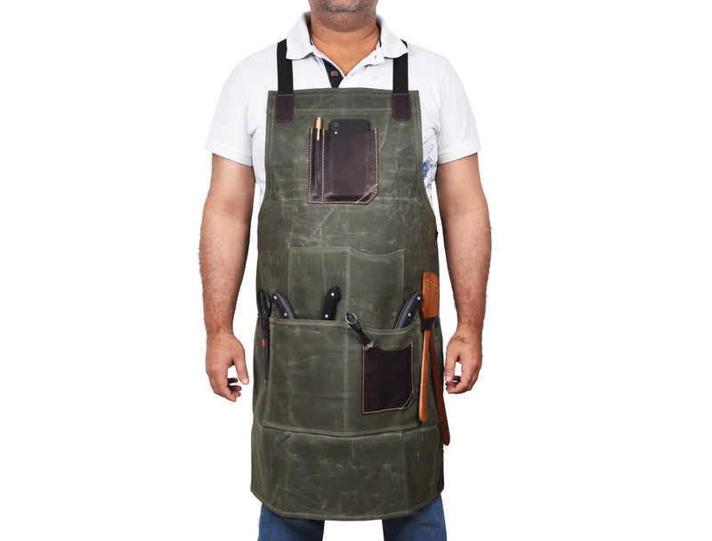 Ever wondered what reinforced stitching, high density water repellent waxed canvas, cross back straps and a personified design can do for the end product. The Turin Waxed Canvas Apron from Aaron Leather Goods is a One Size Fits utility Apron which has a diversified appeal from Chef's to Metal Forgers to Construction Workers to Home Cooking to Utility Workers. An Apron for One and All so be the one to own a One Size Fits All Utility Apron.